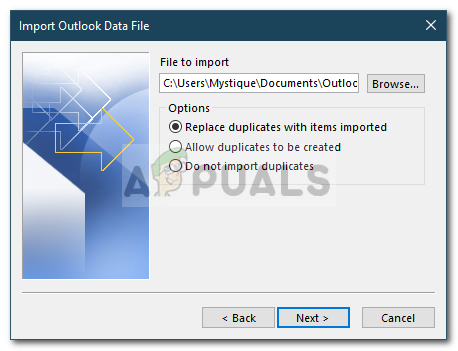 - Make sure ‘Replace duplicates with items imported’ is checked and then click on Browse.