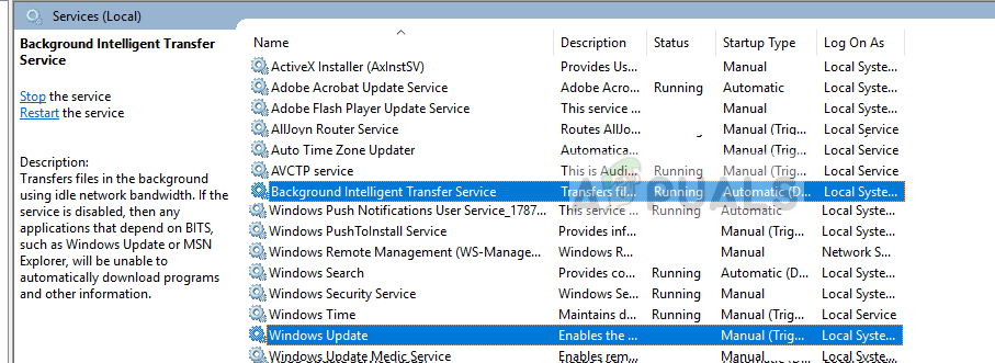 Windows Update Service or Windows Update Background Intelligent Service