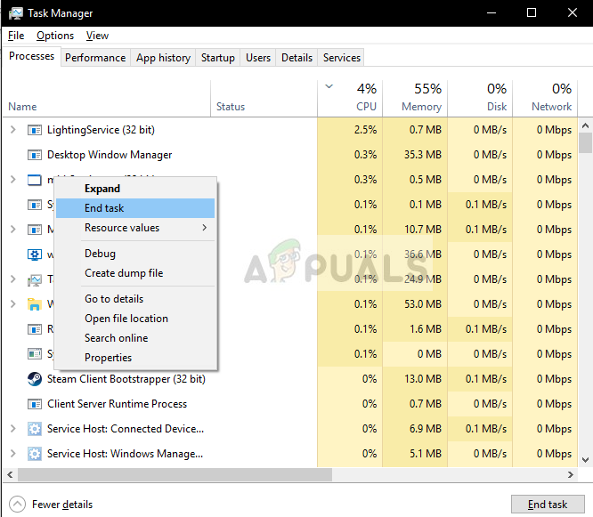 - Once in the Task manager, search for any process/service which is of Pandora. Right-click on it and select End task.