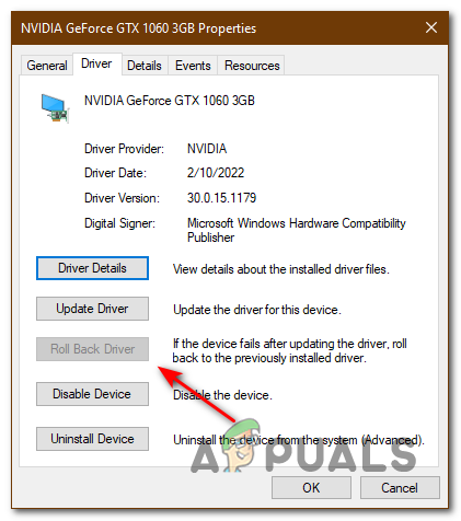 Display Driver properties - Then click on Roll Back Driver