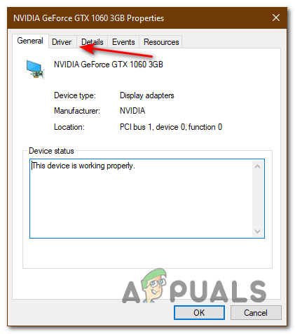 Device manager - Click on Driver from the top
