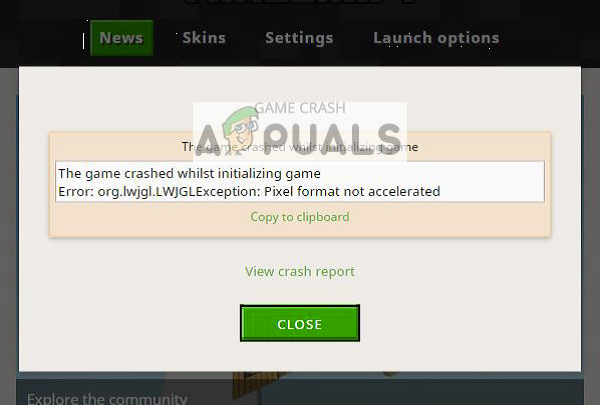 Given its popular nature, having sold about 144 million copies to this day, it has a very strong and distinct fan base. They can even be referred to as hardcore gamers if you would. The most common problem while running this game is the “Pixel format not accelerated”. Upon loading the game from its launcher, it crashes and gives this error. The users face a screen similar to this one: