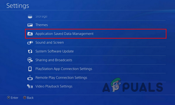Opening up Settings Menu - Then, on the Settings menu, choose the Application Saved Data Management option.