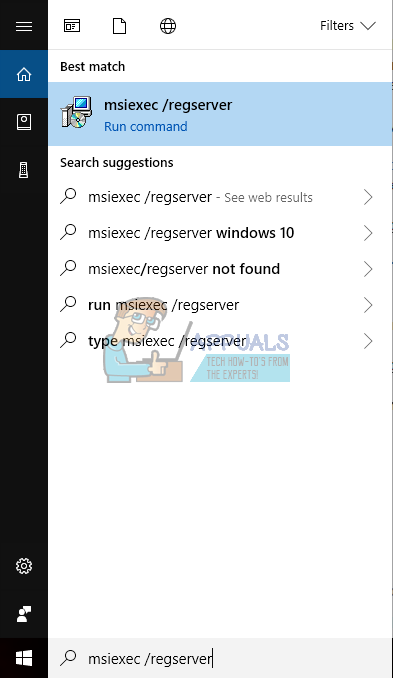 - Press Windows + S, type “msiexec /regserver” in the dialogue and press Enter to execute the command. Windows Installer will now be re-registered on your system.