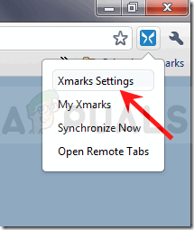 - Locate the blue Xmarks icon at the top right side of the window. Click on it and choose the Xmarks Settings option.