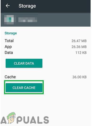 Tapping on the Storage option - Click on the “Clear Cache” button and navigate back to the “Applications” tab.