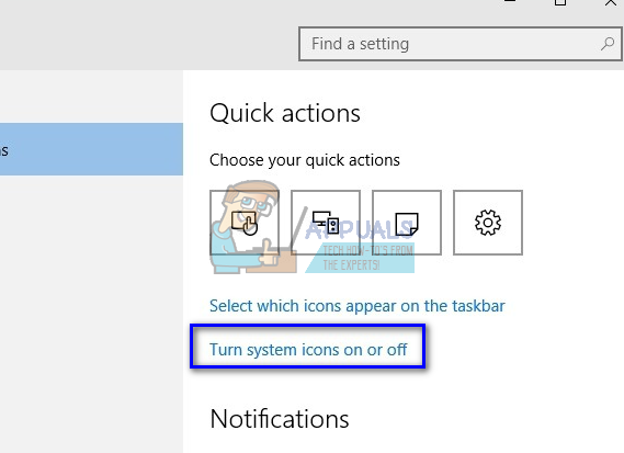 - Click on “Turn system icons on or off” so we can check if the icon is indeed turned on.