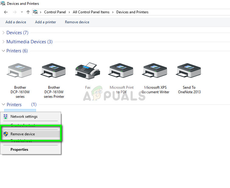 Before we manipulate the printer’s drivers from the device manager, we will try reinstalling the printer and see if they fix the issue. Printers get bad configurations all the time and reinstalling the printer usually refreshes everything. Make sure that you have connected the printer before yourself and have administrator access.