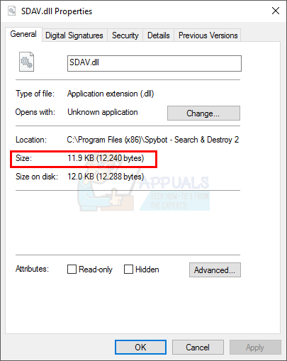 - If the file already exists, verify its size by right-clicking on the dll and selecting properties.