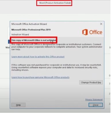 The “Product Activation Failed” error in Microsoft Word and other Office applications (such as Excel, PowerPoint, etc.) occurs when the software cannot verify its activation with Microsoft’s servers or a valid product key. This may happen for several reasons, including an expired trial version, invalid or missing license key, using the wrong Microsoft account, or network/firewall issues that prevent activation.