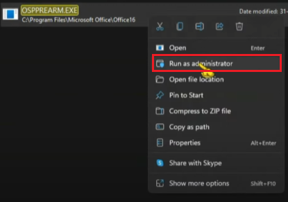 - Locate OSPPREARM.EXE, right-click it, and select Run as Administrator. Repeat this process 3–5 times.
