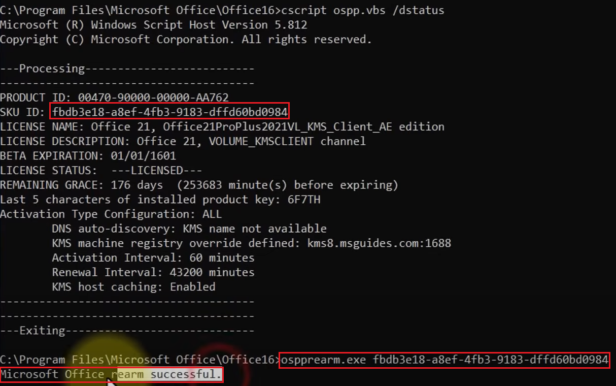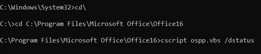 cscript ospp.vbs /dstatus