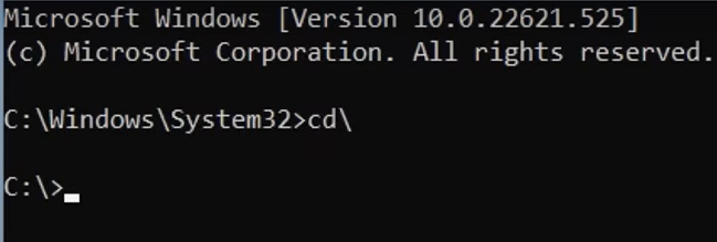 - Type cd\ and press Enter to go to the root directory.