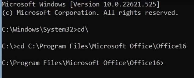 cd "C:\Program Files\Microsoft Office\Office16"