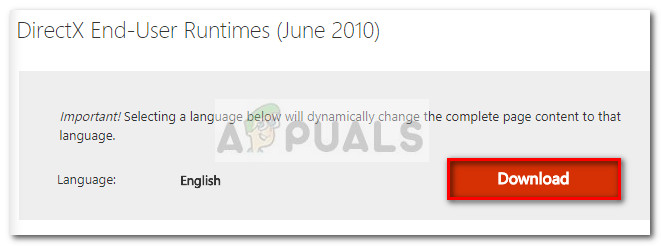 - Visit this link (here), scroll down and click the Download button associated with DirectX End-User Runtimes (June 2010).
