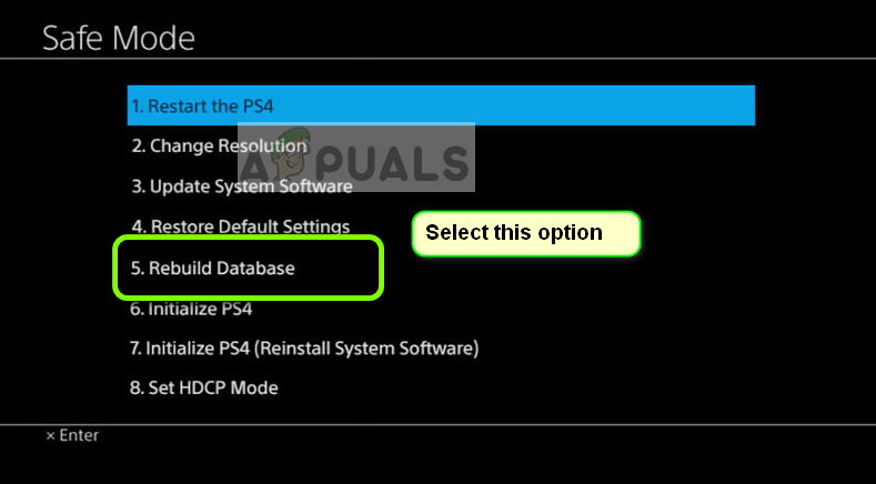 - Select the option Rebuild Database and continue. Once the process is finished, restart your Play Station and check if the issue is resolved.