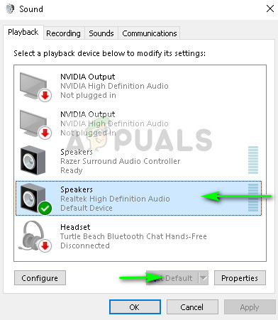 If you are using PS4 headphones on your computer and are having difficulties either hearing or when speaking to your teammates, it possible that you do not have the correct sound output as default. Whenever you plug in a new headset or sound device, Windows automatically configures your sound settings and changes it according to the device you plugged in. We can try changing this and see if this does the trick.