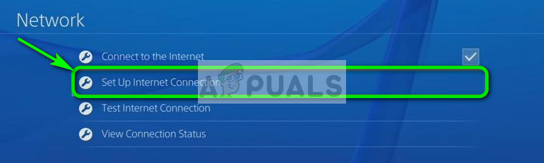 Trying to connect via an ethernet cable is always a more secure way of connecting your console to the router because it nullifies any signal loss and provides a lossless connection with the router. Although wireless gets rid of the extra wires going in and out of the PS4, it can sometimes face issues due to the security measures adopted by the routers. Therefore, in this step, we will be trying an alternate way of connection. For that: