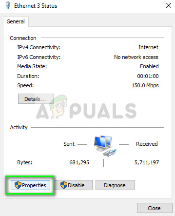 If the error still persists on your computer, you can try resetting the TCP/IPv4 mechanism on your computer. We will navigate to the properties of your connection using the control panel and then disable and enable it. This will force the module to reinitialize all the configurations and fix the problem if there were any discrepancies.
