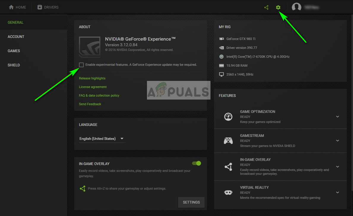 There is an option in the GeForce Experience application which enables experimental features on your computer. Experimental features are features that are not permanently implemented in the whole architecture and are there just for trial purposes.