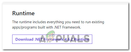 - Click the “Download .NET framework 4.6.2 Runtime” button.