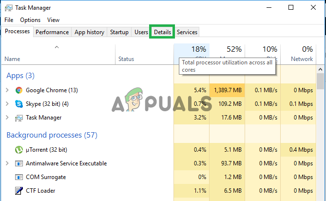 Selecting “Task Manager” after right-clicking on the taskbar - Click on the “Details” tab to open up the app usage details.
