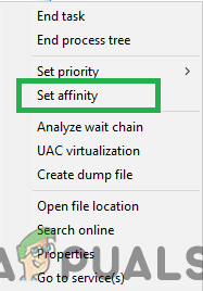 - If the game launches normally, let it reach the main menu and then again go to the “task manager“, right–click on the “TslGame.exe” in details and select “Set Affinity“.