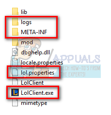 - Now open the “Deploy” folder and delete the files “properties”, “META-INF”, “logs”, and “LoLClient.exe”