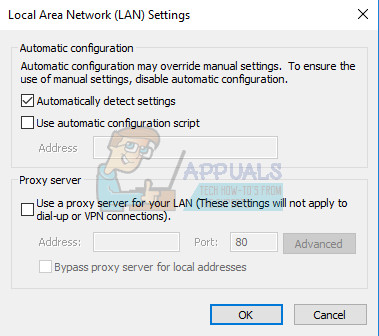 - Mark the checkbox next to Automatically Detect Settings and make sure the Proxy servers are blank unless you actively use one, which is not recommended while updating QuickBooks.