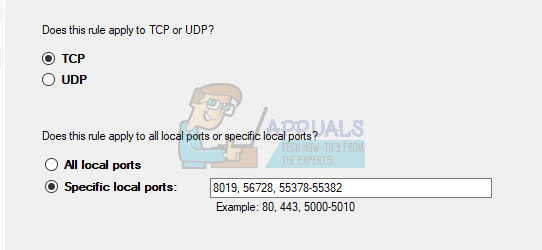 Select TCP from the first set of radio buttons (TCP is recommended) and switch the second radio button to “Specific local ports. You will need to add the following ports in order to fix QuickBooks updating functionality: