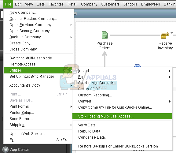 - If you click on File >> Utilities and you see the Stop Hosting Multi-User Access click on this option which will prevent this computer from being the host, leaving only the host computer.