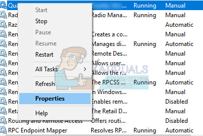 - Right-click on the service and click on Properties.