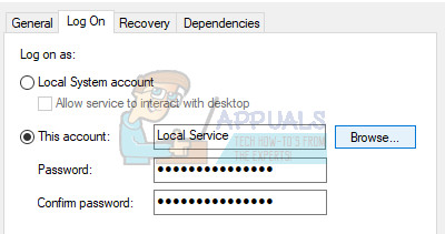 - Navigate to the Log On tab and click on the Browser… button.