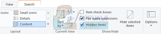 - Click on the “View” tab on File Explorer’s menu and click on the “Hidden items” checkbox in the Show/hide section. File Explorer will show the hidden files and will remember this option until you change it again.