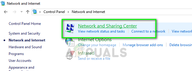 - Select “Network and Sharing Center” from the next window you are navigated to.