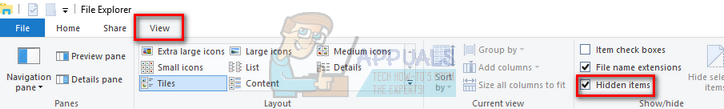 - Since all the folders in this directory are hidden, we need to unhide them first. Click on the View tab present at the top of the screen and check “Hidden items”.