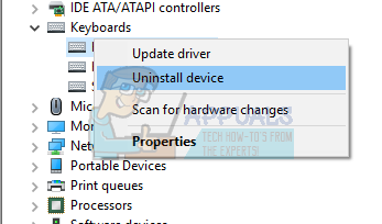 - Press Windows + R and type “devmgmt.msc” in the dialogue box. Once in the device manager, expand the category of Razer device you are using. In this case, we select Keyboards. Right-click on the device and select “Uninstall device”.