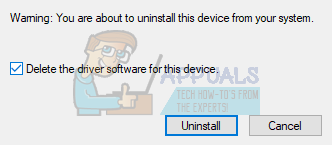 - A warning might flash in front of your screen asking you to confirm your actions. Click “Uninstall” and make sure you check the option “Delete the driver software for this device”.