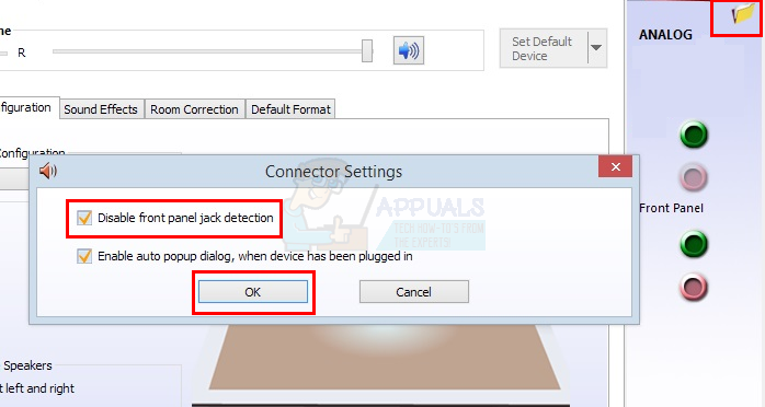 Disabling the Front Panel Jack Detection option from the Realtek Audio Manager has worked for a lot of users as well. Try to change this option if the method 1 didn’t work for you. Here are the steps that can help you find this option