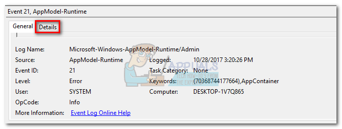 - Identify the RSOD error and click on it to select it. With the error selected, go down to the General tab and investigate the error. You can either copy the error message and search online for more information or click on Details and search for the name of the device that malfunctioned.
