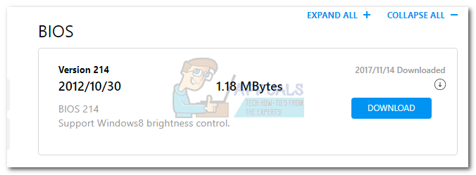 - Visit the official web page of your laptop/motherboard (on desktop) manufacturer and search for your particular model. Then navigate to the download section and download the bios update file.