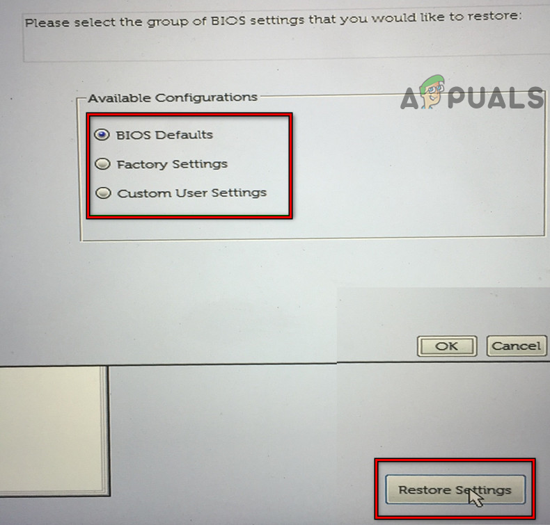 - Now click on Restore Settings and afterward, confirm to restore the PC’s BIOS to its defaults.
