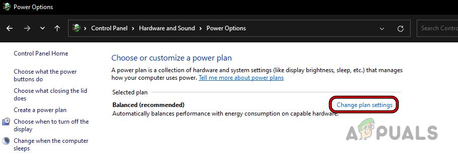 Open Power Options in the System’s Control Panel - Then click on Change Plan Settings