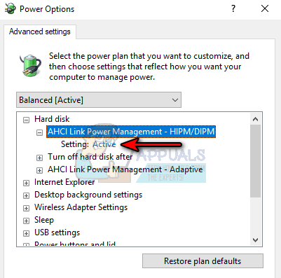 Open Change Advanced Power Settings in the Edit Plan Settings - Then double-click on AHCI Link Power Management – HIPM/DIPM and set its Setting dropdown to Active.
