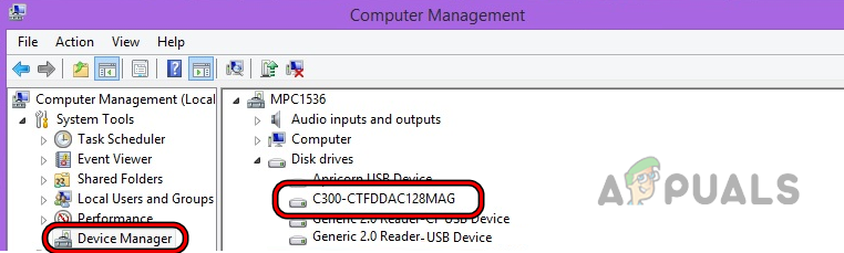 - Now expand the Disk Drives tab and note down/copy the exact name of the hard drive like C300-CTFDDAC128MAG.