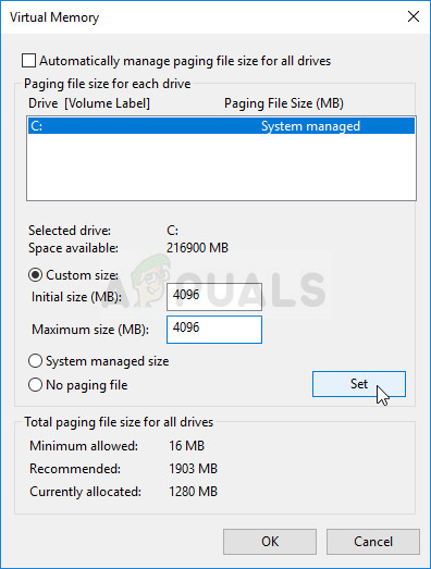 This particular method has helped plenty of users solve their issue almost instantly. No matter how much RAM you have, adding some page file memory might help you solve the problem as the game’s high quality setting sometimes needs that extra push it might get by reserving some space on your hard drive to be used as additional RAM memory.