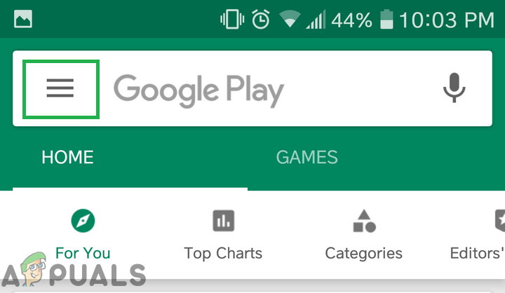 - Tap on the Google Play Store icon and then on the “Menu” button in the top left corner.