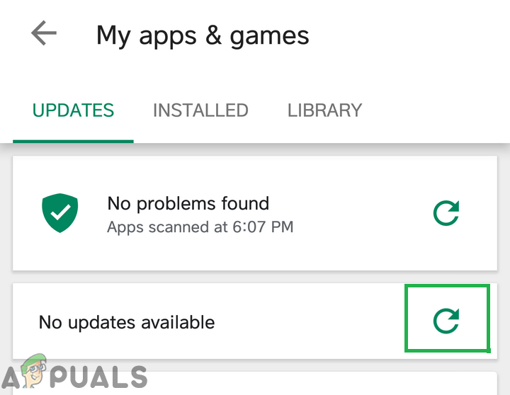 Clicking on the My Apps & Games option - Tap on the “Check for Updates” option or on the “refresh” icon if the checking process is already completed.