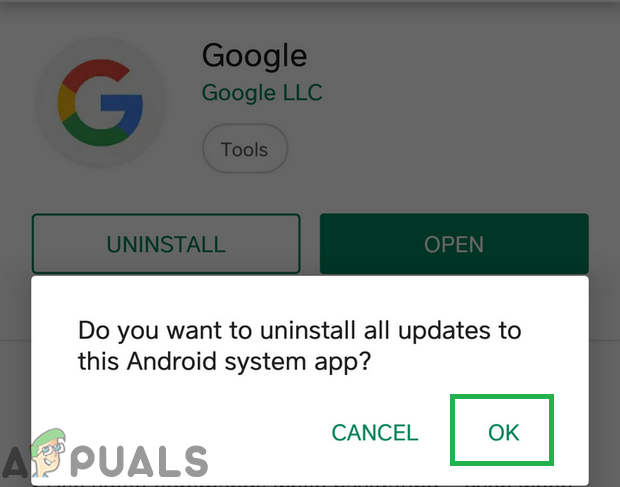 Clicking on Uninstall and then tapping on “OK” - In the same manner, repeat this process for all the Google Related applications.