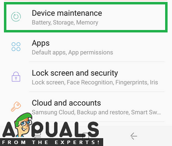 Clicking on the “Device Maintenance” option inside settings - Now Select the “Battery Usage” option and identify the application that is using the most battery while keeping in mind the amount of time you actually used it.